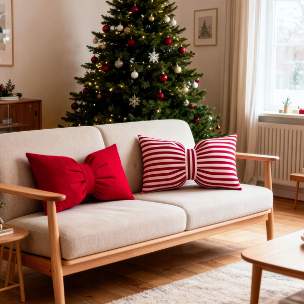 Świąteczna Poduszka „Kokarda” w Paski Cappuccino – 50 × 30 cm