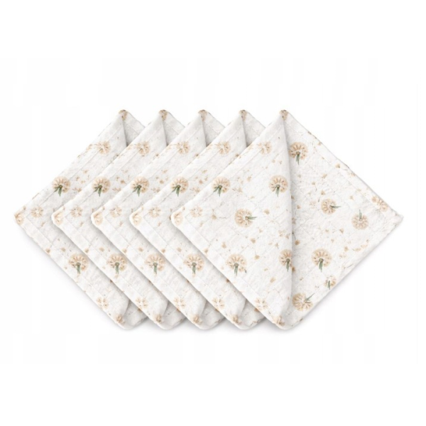 Zestaw 5 muślinowych pieluszek – ulewajek 38×38 cm 🌿