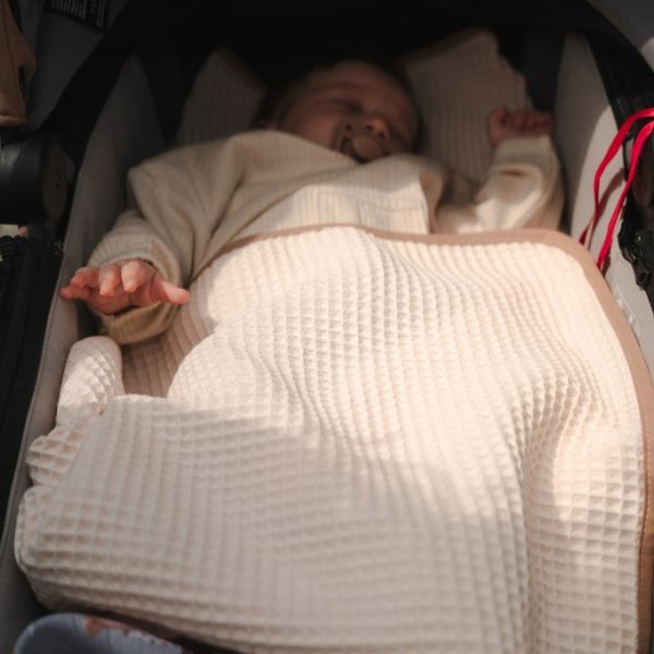 Ciekawy splot bawełny powoduje, że komplet “WAFFLE” pełni również funkcję ozdobną pokoiku oraz wózka dziecięcego.