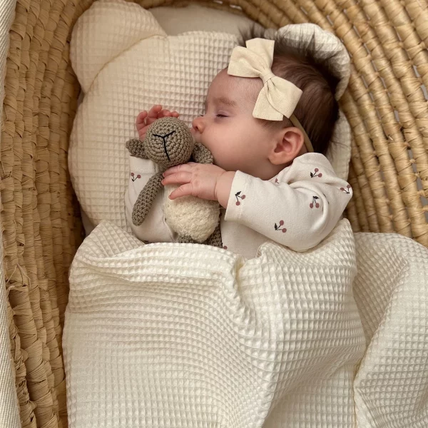 Zestaw wafelek kocyk + poduszka to idealny zestaw do gondoli, kołyski, łóżeczka.