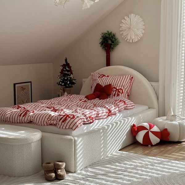 Miękka, dekoracyjna poduszka w kształcie klasycznej świątecznej laski cukrowej to idealny dodatek do zimowych aranżacji. Wykonana z przyjemnej w dotyku tkaniny buklowej, doda wnętrzu ciepła, przytulności i bożonarodzeniowego klimatu. Świetnie prezentuje się w pokoju dziecka, na kanapie w salonie lub jako część świątecznej sesji zdjęciowej.