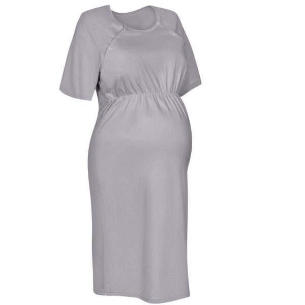 Koszula zapinana jest z przodu na praktyczne napy, które umożliwiają szybki i dyskretny dostęp do piersi – to idealne rozwiązanie na czas karmienia, zarówno w dzień, jak i w nocy. To także sprawia, że świetnie sprawdzi się jako koszula do porodu i na pobyt w szpitalu.
