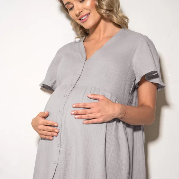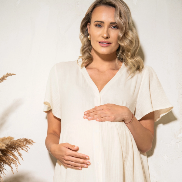 Otul się delikatnością i wygodą każdej nocy – nasza muślinowa koszula nocna to idealny wybór dla przyszłych mam, które cenią sobie komfort i subtelne piękno.