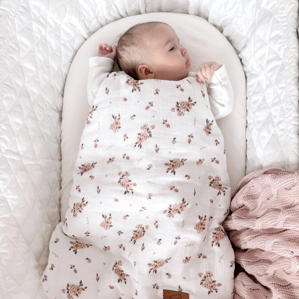 Miękki, oddychający i w pełni bezpieczny – muślinowy śpiworek to idealne rozwiązanie dla niemowląt i małych dzieci już od pierwszych dni życia. Śpiworek został uszyty z dwóch warstw delikatnego muślinu double gaze, znanego ze swojej wyjątkowej miękkości i przewiewności. Wypełnienie stanowi antyalergiczna owata silikonowa, która zapewnia komfort termiczny i bezpieczeństwo dla wrażliwej skóry dziecka. Śpiworek został stworzony do użytkowania w łóżeczku bez kołderki i dodatkowych okryć. Dla komfortu dziecka i uniknięcia przegrzania dobierz śpiworek i bieliznę nocną maluszka do temperatury w pomieszczeniu. Warto również obserwować dziecko i dobrać rodzaj okrycia do jego własnych preferencji.