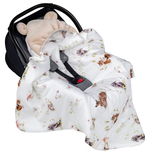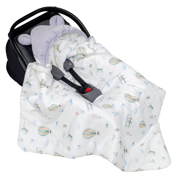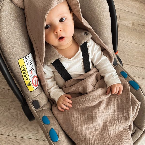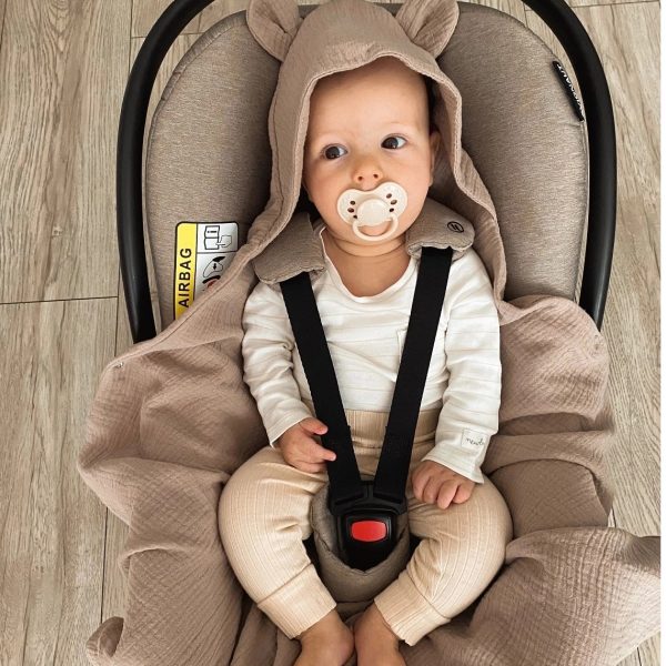 Kocyk otulacz do fotelika z kapturkiem MUŚLINOWY ocieplany