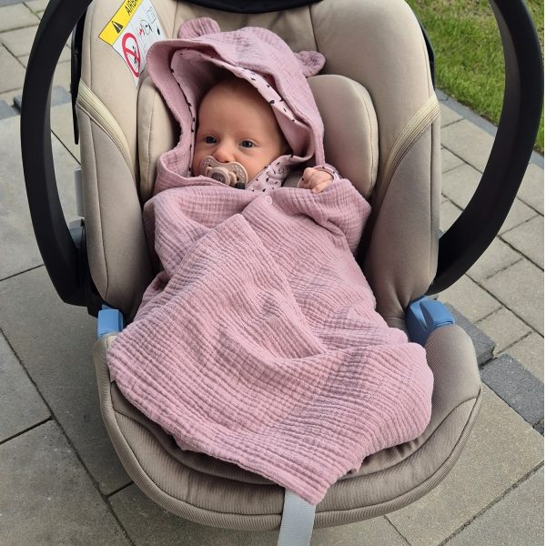 Otulacz z kapturkiem do fotelika to świetny pomysł na prezent z okazji narodzin maluszka czy baby shower.