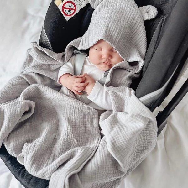 Muślinowy otulacz z kapturkiem do fotelika