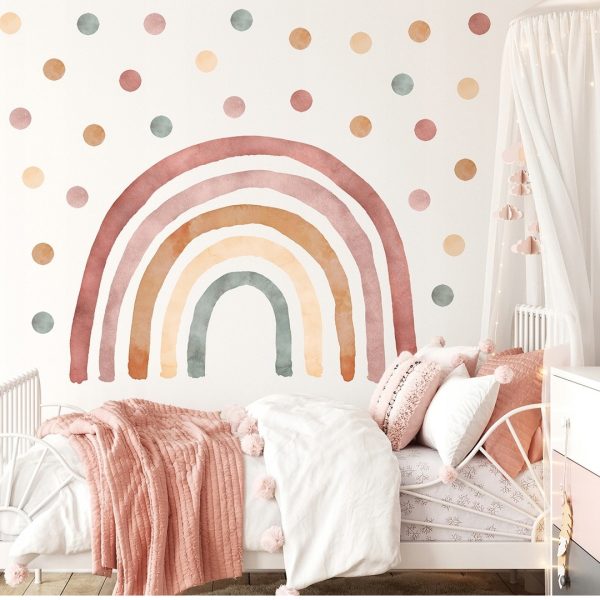 Naklejka tęcza w rozmiarze 50 cm x 70 + 50 naklejek kropek, każde w rozmiarze 4 cm x 4 cm