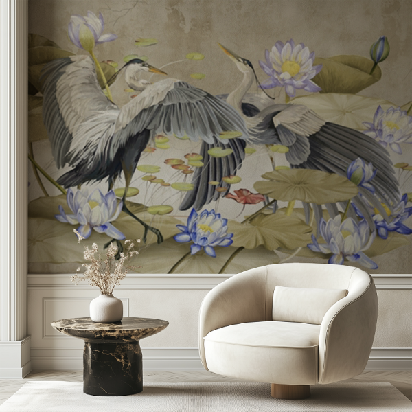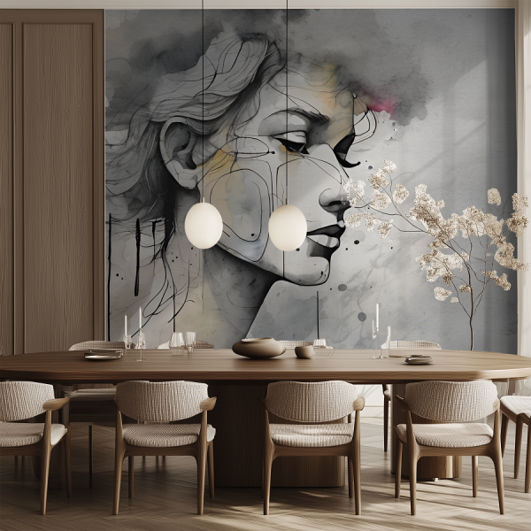 W związku z dużym powiększeniem motywu, niektóre detale mogą sprawiać wrażenie bardziej miękkich czy delikatnie rozmytych — to zamierzony efekt artystyczny, który oddaje unikalność ręcznie malowanej ilustracji i nadaje fototapecie wyjątkowego uroku.
