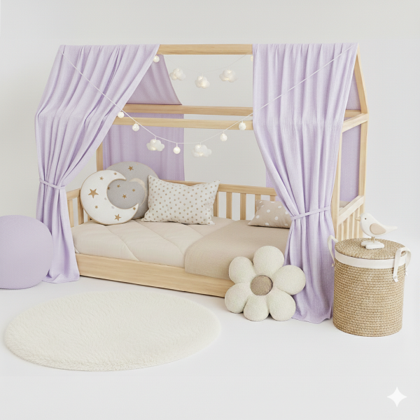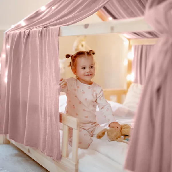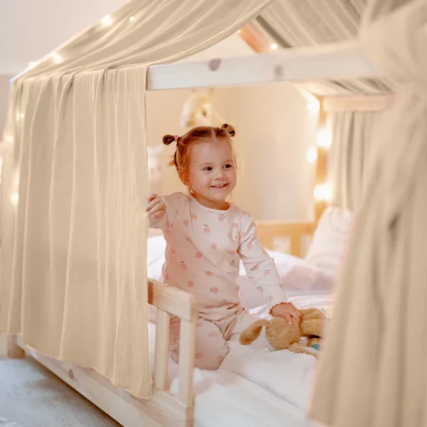 Dodaj odrobinę magii i ciepła do pokoju swojego dziecka z naszymi zasłonkami muślinowymi do łóżeczek domków.