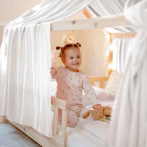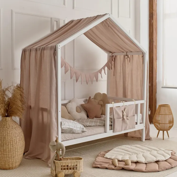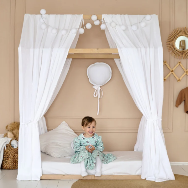 Dodaj odrobinę magii i ciepła do pokoju swojego dziecka z naszymi zasłonkami muślinowymi do łóżeczek domków.
