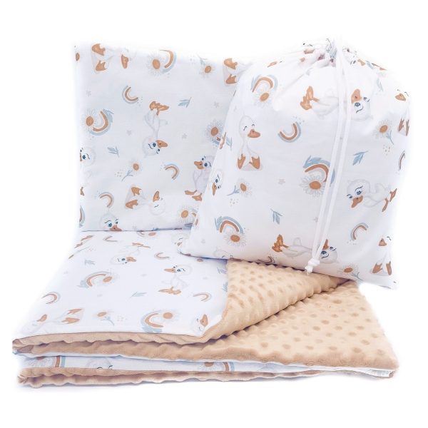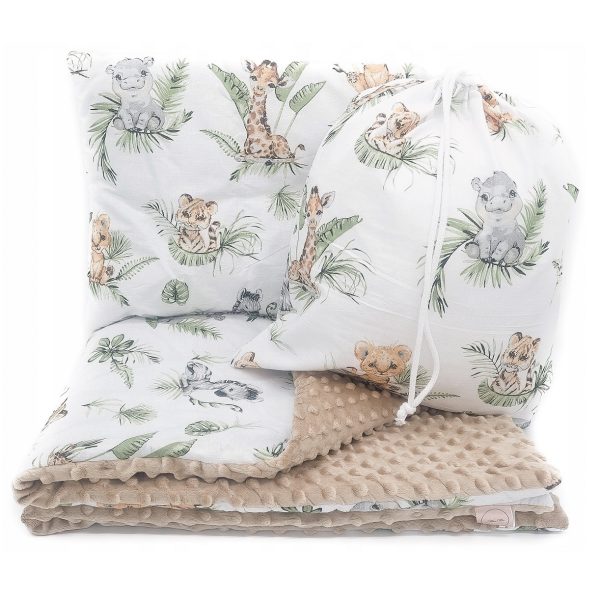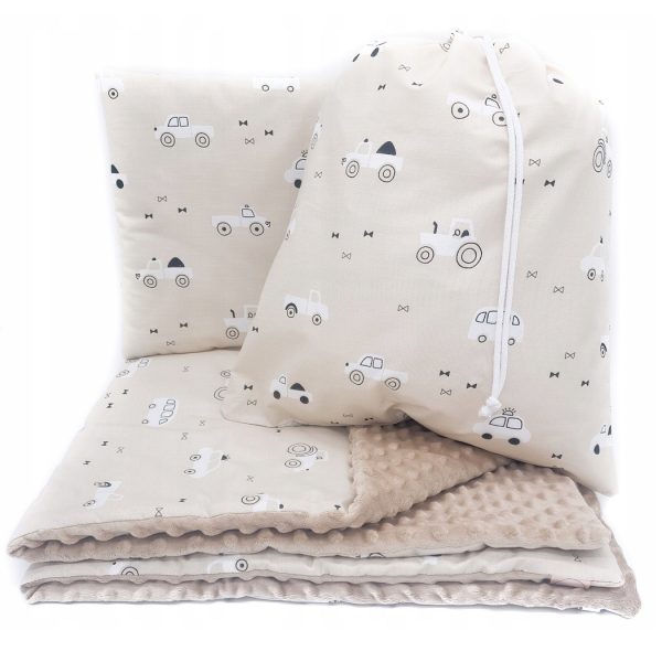 Zestaw został wykonany z miękkiego, przyjemnego w dotyku polaru Minky oraz wysokiej jakości tkaniny bawełnianej. Wszystkie materiały posiadają certyfikat Oeko-TEX Standard 100, co oznacza, że są bezpieczne dla dzieci i nie zawierają szkodliwych substancji.