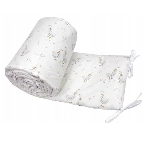 Ochraniacz mocowany jest do łóżeczka za pomocą sznureczków zapewniających bezpieczne zamocowanie.