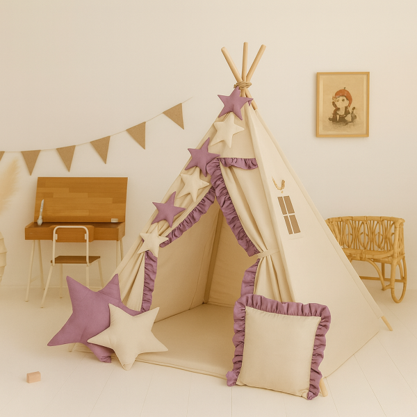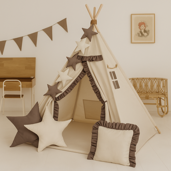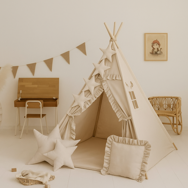 Namiot Tipi Teepee z matą, poduszkami i girlandą ⭐