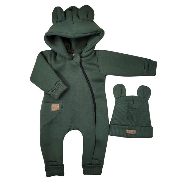 KAZUM Pajacyk, dresowy kombinezon bez stóp z ocieplanej dresówki z kapturem + prążkowana podwójna czapka