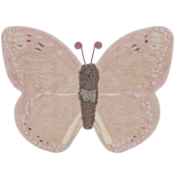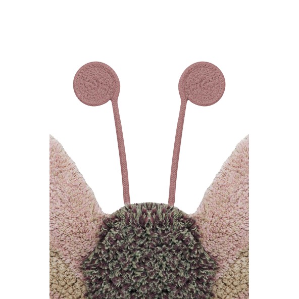 Jest pełen małych, pięknych detali, w tym palety ośmiu różnych odcieni różu, które łączą się ze sobą, tworząc realistycznego motyla i czułki starannie wykonane ręcznie z bawełnianego sznurka, który można łatwo usunąć z dywanu przed praniem.