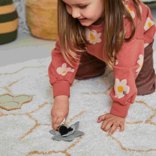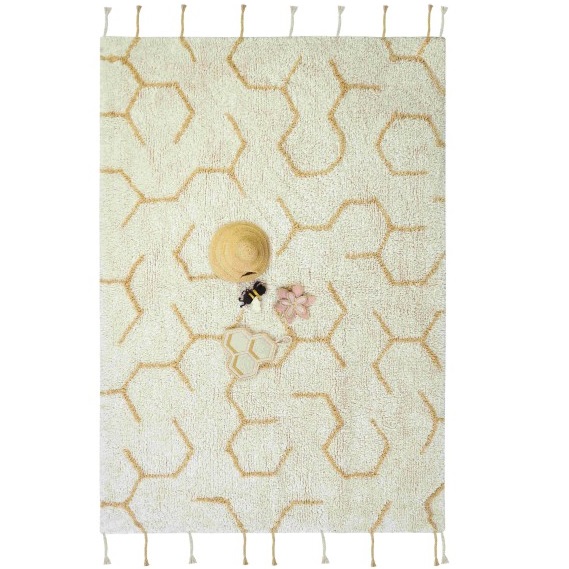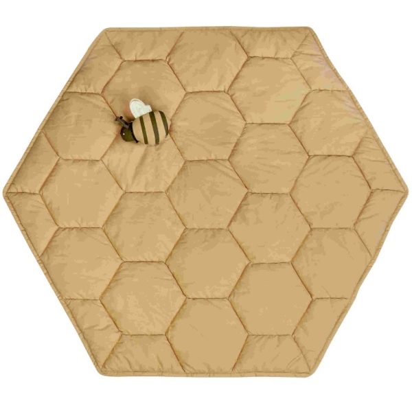 Interaktywna przestrzeń do zabawy stymulująca zmysły dziecka. Mata Honeycomb ma sześciokątny kształt i jest pikowana w charakterystyczny wzór plastra miodu. Wykonana jest z miękkiej popeliny z bawełny organicznej w kolorze miodowym i wypełniona miękkim wypełnieniem z recyklingu. Do maty dołączona jest urocza grzechotka w kształcie pszczółki, która zawiera marszczony papier i grzechotkę w środku.