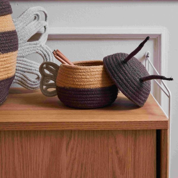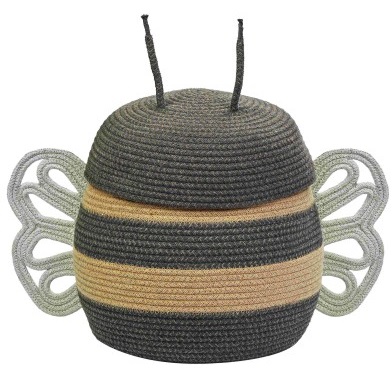 Uroczy koszyk w kształcie pszczoły, który przypomni maluchom dni spędzone na zabawie na łonie natury. Kosz Mama Bee jest wykonany ręcznie przy użyciu plecionych sznurków z przetworzonych butelek PET pokrytych bawełnianą przędzą, łącząc rzędy Honey z mieszanymi ciemnoszarymi sznurkami. Z dwoma sznurkami dodanymi jako anteny i delikatnie ukształtowanymi skrzydłami w kolorze jasnoniebieskim. Prawie jak zabawki, kosze Mama Bee i Baby Bee mogą być używane razem lub osobno, pomagając utrzymać porządek w zabawkach i skarbach najmłodszych.