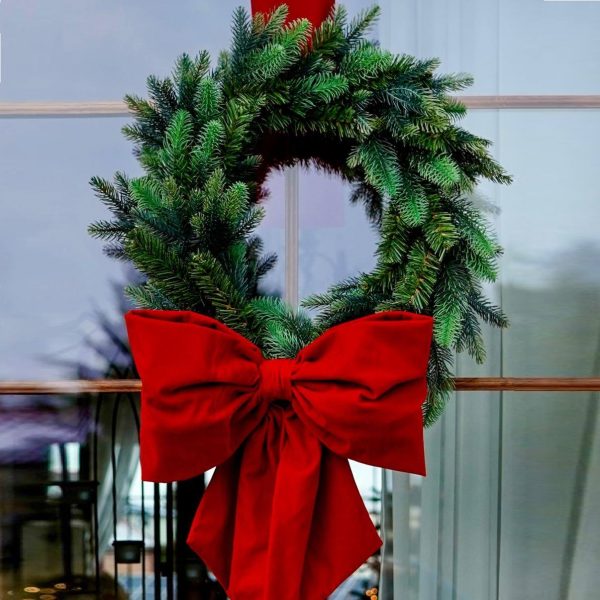 Elegancki wianek bożonarodzeniowy o średnicy 40 cm, ozdobiony bordową welurową wstążką. To stylowa dekoracja, która wprowadzi do domu wyjątkowy, świąteczny klimat i podkreśli magię Bożego Narodzenia. Doskonale prezentuje się na drzwiach wejściowych, nad kominkiem, w oknie czy na ścianie, stając się efektownym akcentem aranżacji.