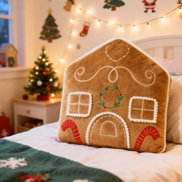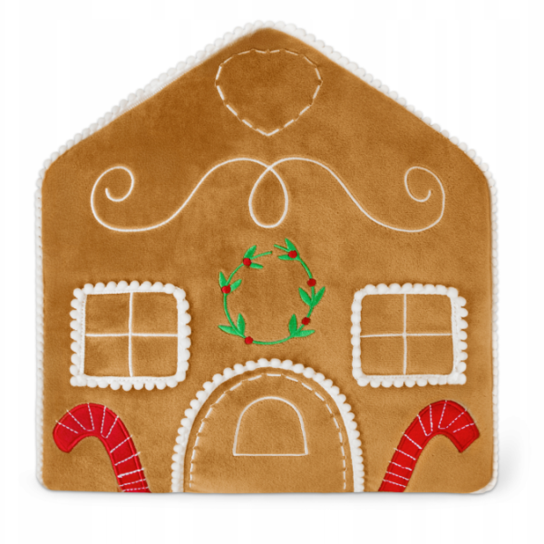 Urocza poduszka w kształcie świątecznego domku wykonana z miękkiego, przyjemnego w dotyku weluru to idealny dodatek do zimowych aranżacji. Jej subtelny blask, staranne wykończenie i wyjątkowy kształt tworzą ciepły, magiczny klimat, który doskonale wpisuje się w dekoracje bożonarodzeniowe.