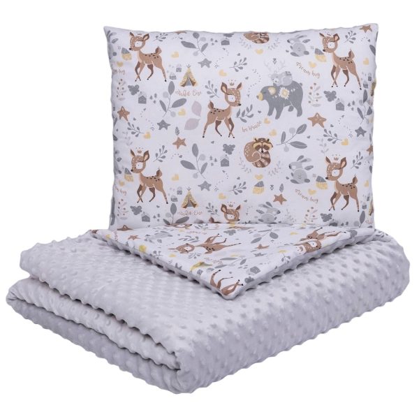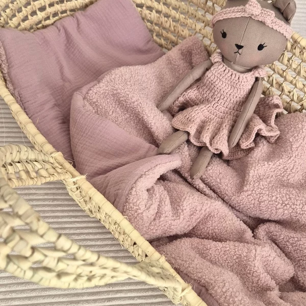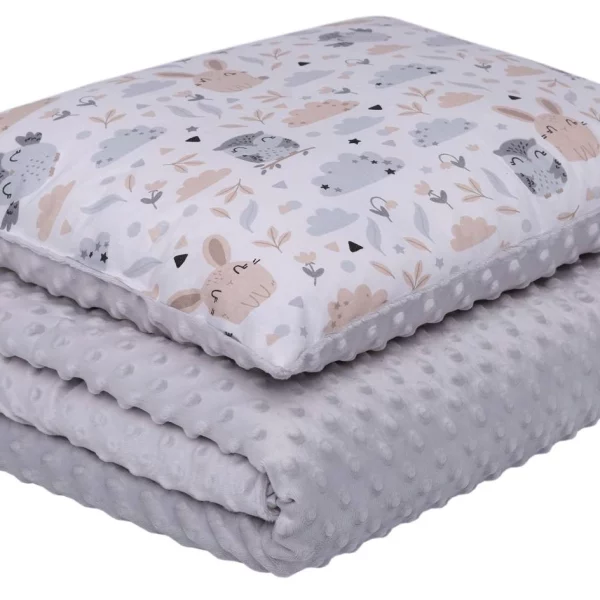 Nasz komplet pościelowy to idealne połączenie elegancji, funkcjonalności i bezpieczeństwa. Składa się z dużego, mięciutkiego kocyka oraz puchatej poduszki, które razem stworzą przytulne miejsce do snu i odpoczynku dla Twojego maluszka.