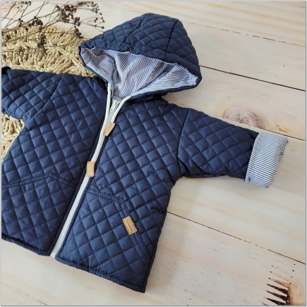 Przepiękna, modna, pikowana – cieplutka kurteczka niemowlęca, dziecięca z kapturem