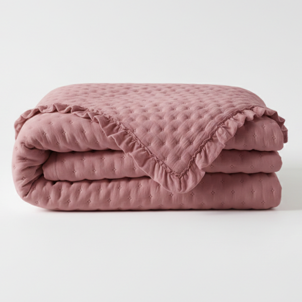 Pikowana narzuta na łóżko z dekoracyjną falbanką. Estetycznie wykańcza łóżko i pomaga utrzymać porządek w pokoju dziecka lub sypialni. Uniwersalny fason pasuje do różnych aranżacji wnętrz. Dostępna w kilku rozmiarach.