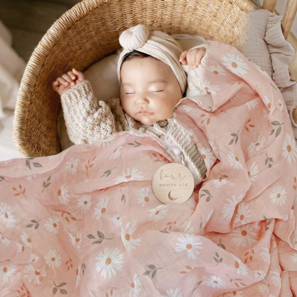 100% bawełna (muślin) – miękka, oddychająca i przyjazna dla delikatnej skóry dziecka.