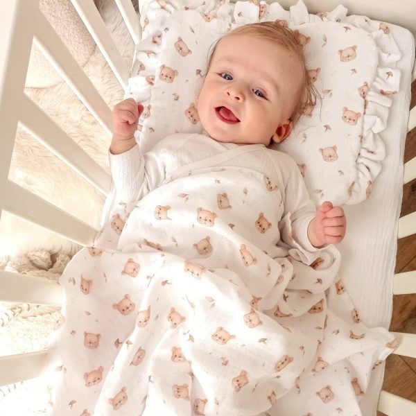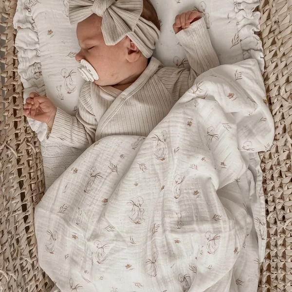Skład materiałowy: Muślin bawełniany (100% bawełna) – miękki i przyjazny dla skóry dziecka