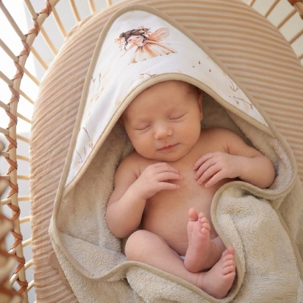 Ciepłe i miękkie okrycie kąpielowe dla niemowląt, wykonane z wysokiej jakości dzianiny frotte ze 100% bawełny. Idealnie sprawdzi się do otulenia dziecka bezpośrednio po kąpieli, zapewniając mu komfort, ciepło i poczucie bezpieczeństwa już od pierwszych chwil życia.
