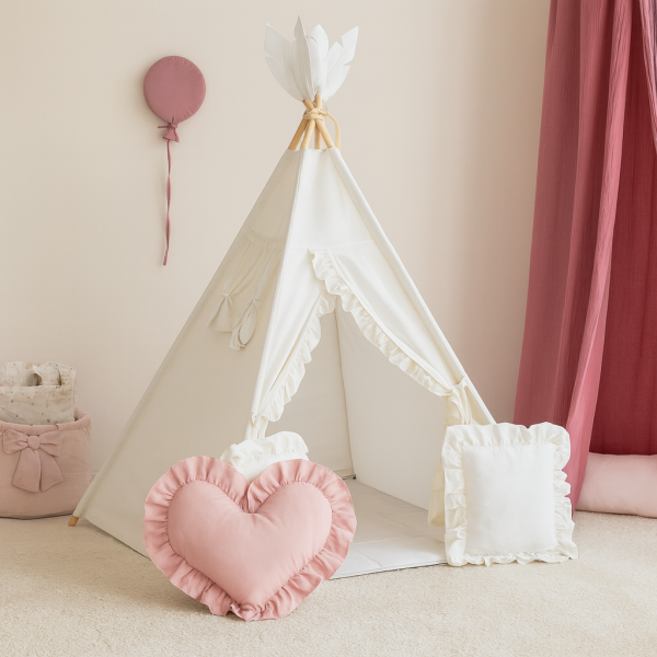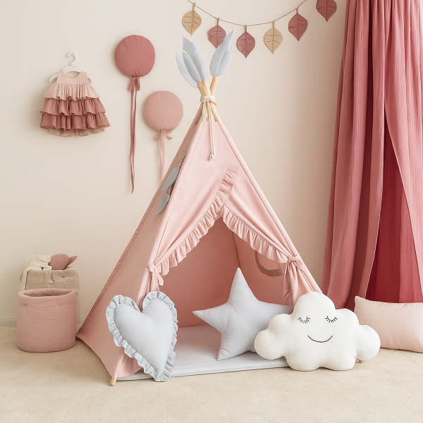 Namiot tipi to idealna przestrzeń do zabawy, czytania i odpoczynku, która pięknie wkomponuje się w wystrój pokoju dziecięcego. Lekka konstrukcja i naturalne materiały sprawiają, że tipi jest bezpieczne, wygodne i praktyczne.