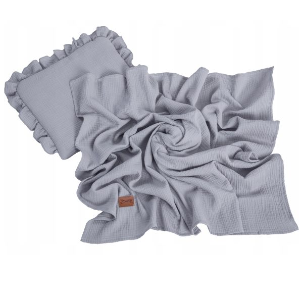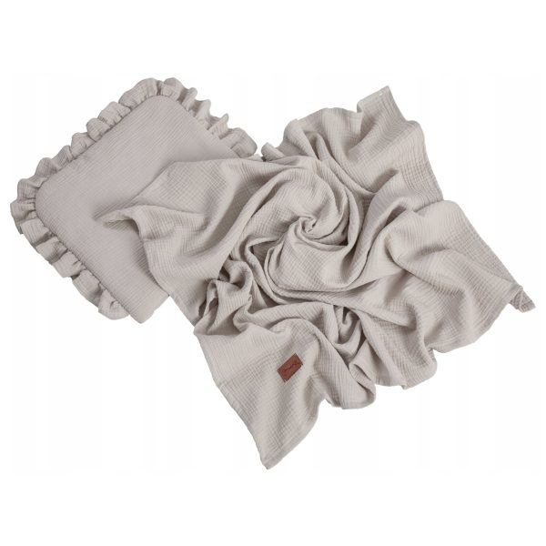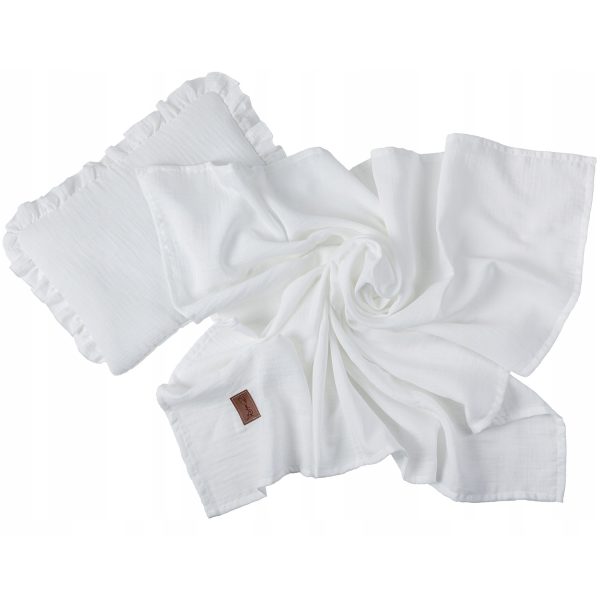 Muślinowy komplet koc otulacz poduszka z falbanką