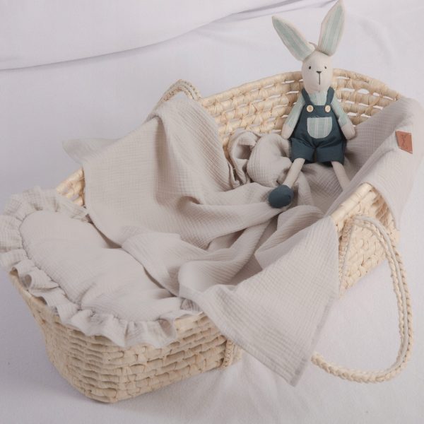Wykonany z wysokiej jakości muślinu bawełnianego double gauze, który zachwyca swoją miękkością i lekkością. Muślin to materiał, który doskonale oddycha i reguluje temperaturę, dlatego kocyk idealnie sprawdzi się w upalne dni, zapobiegając przegrzewaniu się maluszka. Kocyk nie posiada wypełnienia – jest cienki i naturalny, stworzony z myślą o letnim wypoczynku i codziennym użytkowaniu.