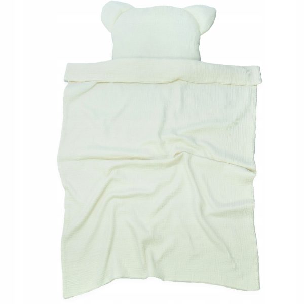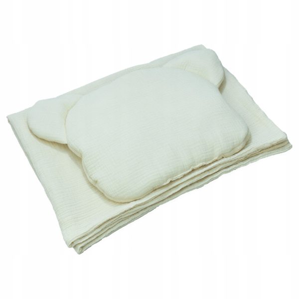 Muślinowy komplet: poduszka miś + koc otulacz podwójny