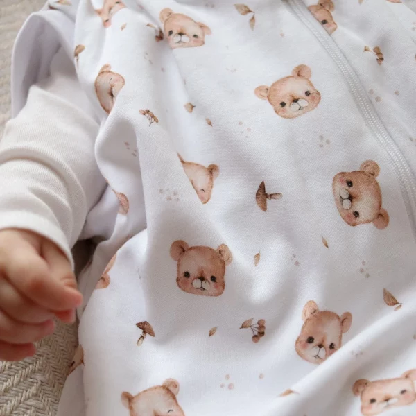 Idealny na cały rok – lekki, elastyczny i przyjemnie otulający, śpiworek utrzymuje optymalną temperaturę ciała dziecka bez ryzyka przegrzania. Śpiworek zasuwany jest na dwustronny suwak, z możliwością rozsunięcia od góry lub tylko od dołu, np. w celu zmiany pieluszki śpiącemu dziecku. Specjalny kształt śpiworka oraz zapięcie na napki w miejscu rączek dziecka pozwala na stworzenie otulacza, który zapewnia noworodkom poczucie bezpieczeństwa. Dzięki temu, że rączki dziecka znajdują się blisko ciała, zapobiega odruchowi Moro (to niekontrolowane ruchy rączkami, które wybudzają dziecko i wywołują płacz). W miarę rozwoju dziecka, w pierwszym etapie możemy rozpiąć tylko jeden “rękawek” tak, aby jedna rączka nadal pozostała schowana w śpiworku. Dzięki temu niemowlę stopniowo przyzwyczaja się do spania w wolnej przestrzeni.