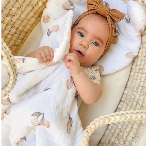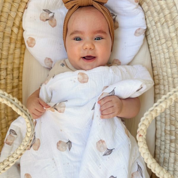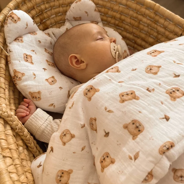Skład materiałowy: Muślin bawełniany (100% bawełna) – miękki i przyjazny dla skóry dziecka