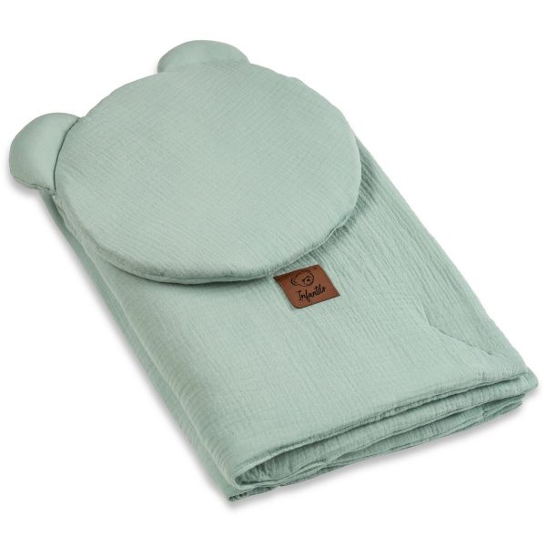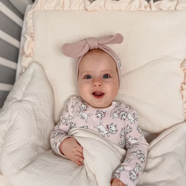 Poduszeczka w zestawie jest płaska – ok.3cm wysokości, stworzona specjalnie dla niemowląt.
