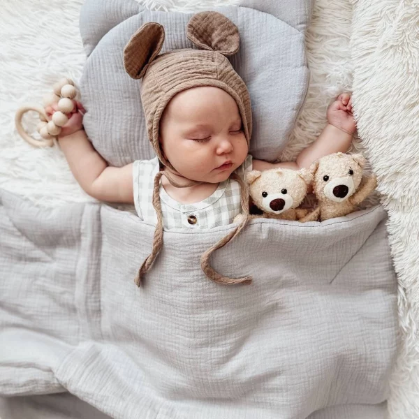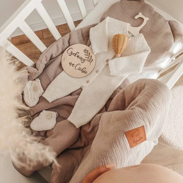 Komplet muślinowy jest niezwykle przyjemny, miękki i delikatny dla skóry dziecka, dzięki czemu doskonale sprawdzi się już od pierwszych dni życia.