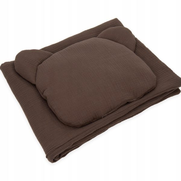 Kocyk Muślinowy 75 x 100 cm + podusia Miś 35 x 40 cm