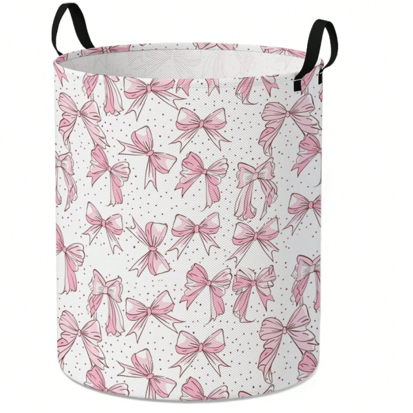 Praktyczny i dekoracyjny kosz na zabawki w kokardki, który pomoże utrzymać porządek w pokoju dziecięcym. Wykonany z 100% poliestru, jest lekki, a jednocześnie trwały i wygodny w codziennym użytkowaniu. Rozmiar 40×50 cm pozwala na przechowywanie zabawek, kocyków lub akcesoriów dziecięcych. Uroczy wzór w kokardki sprawia, że kosz pięknie dopełnia aranżację pokoju, łącząc funkcjonalność z estetyką.