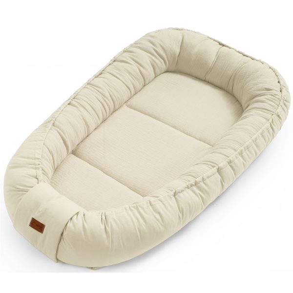 Boki kokonu wypełnione są miękką i antyalergiczną kulą silikonową, zapewniającą poczucie bezpieczeństwa i wygody podczas snu i odpoczynku dziecka. Specjalna pianka poliuretanowa w dnie dodatkowo zwiększa komfort użytkowania. Kokon wyposażony jest w bezpieczny system regulacji rozmiaru za pomocą sznurków, z dodatkową materiałową klapką
