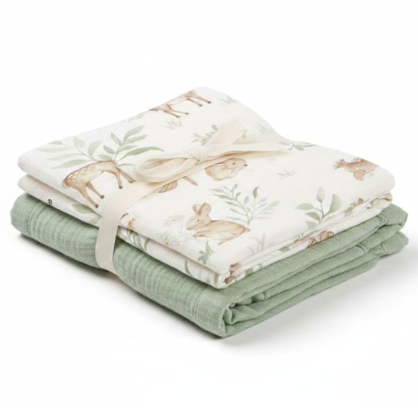 Skład materiałowy: Muślin bawełniany (100% bawełna) – miękki i przyjazny dla skóry dziecka
