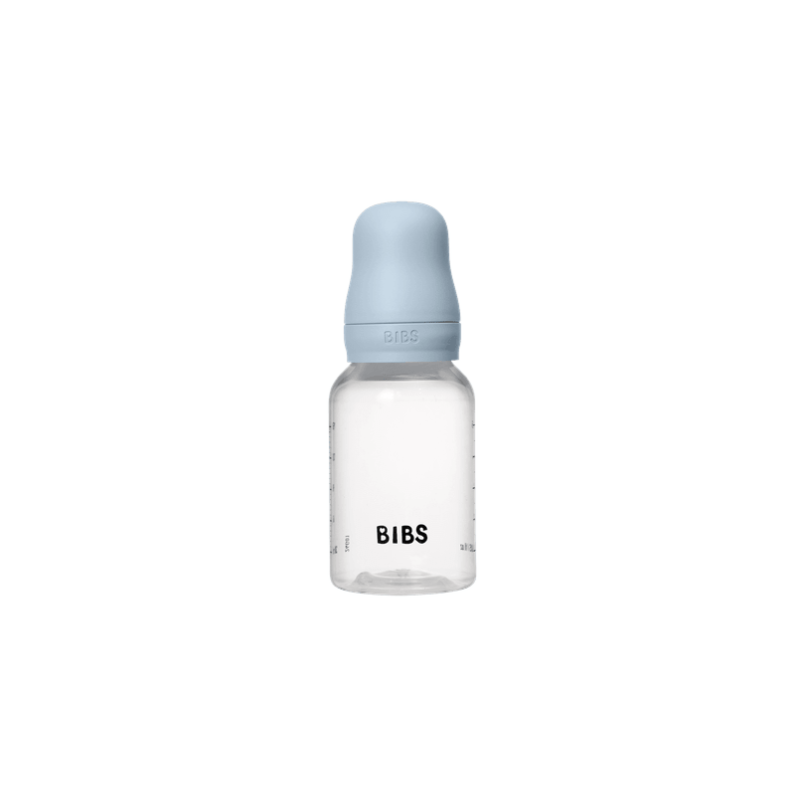 BIBS BUTELKA PLASTIC PP ze smoczkiem antykolkowym z kauczuku naturalnego, pojemność 150 ml, BABY BLUE BBTB
