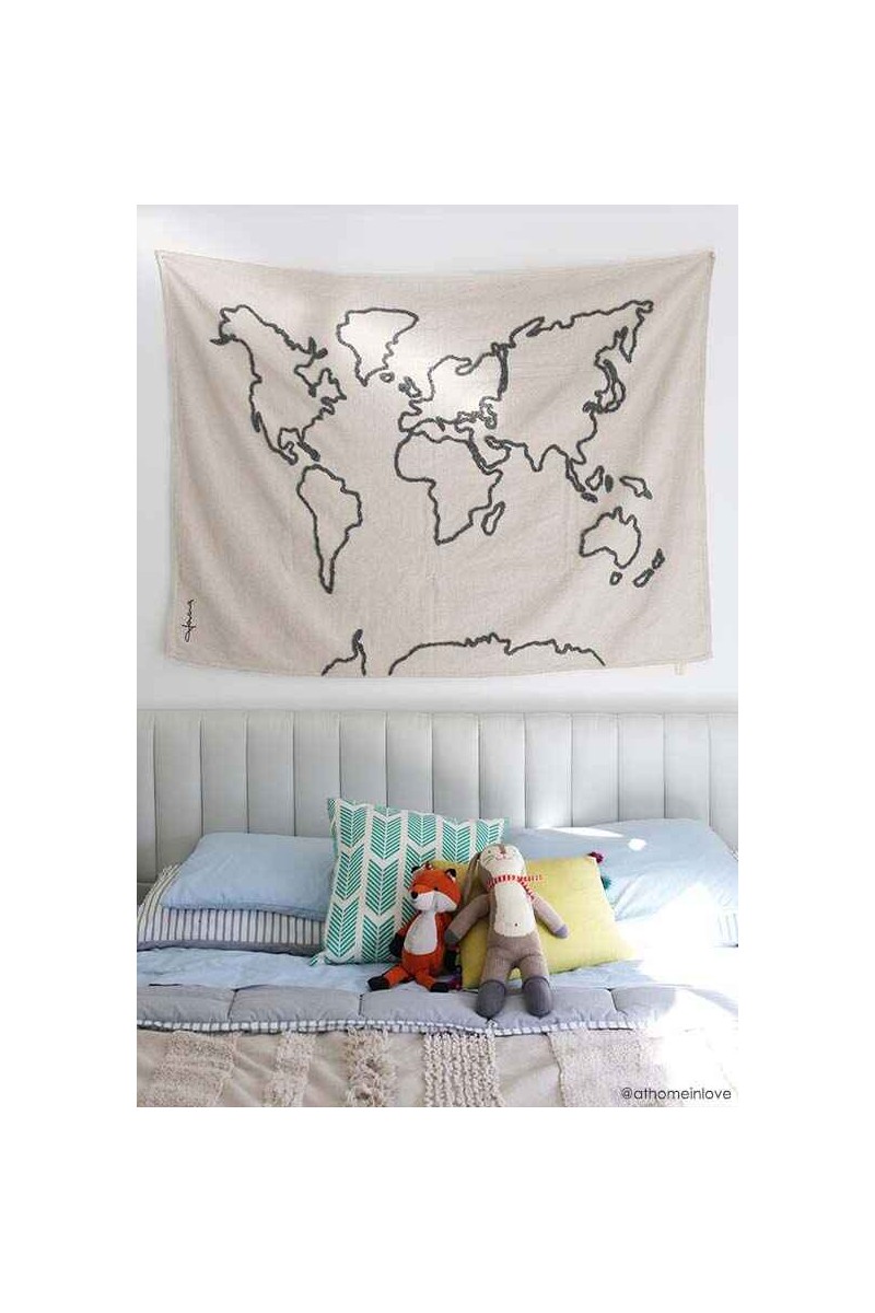 Ta subtelna dekoracja może służyć jako tablica inspiracji – wystarczy przypiąć zdjęcia, pamiątki lub notatki z podróży. Może też stać się matą piknikową, pledem, a nawet lekkim dywanikiem – wszystko zależy od wyobraźni!