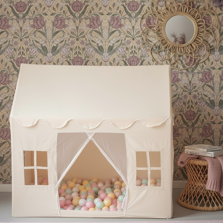 Bezpieczne materiały: Wykonany z płóciennej tkaniny bawełnianej, zapewnia zdrowe i bezpieczne środowisko do zabawy. Materiał jest przewiewny i wytrzymały, co gwarantuje długotrwałe użytkowanie.
