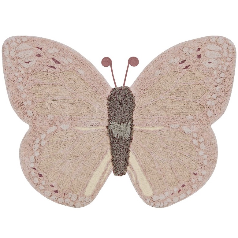 Jest pełen małych, pięknych detali, w tym palety ośmiu różnych odcieni różu, które łączą się ze sobą, tworząc realistycznego motyla i czułki starannie wykonane ręcznie z bawełnianego sznurka, który można łatwo usunąć z dywanu przed praniem.