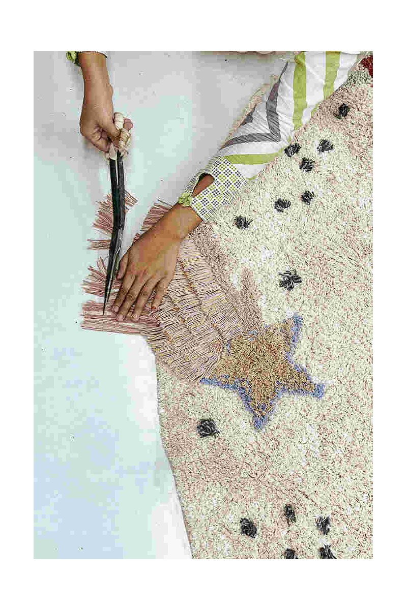 Ręczne wykonanie: Jeśli posiadasz jeden z naszych charakterystycznych dywanów do domu, wiesz, że jest to jedyny w swoim rodzaju egzemplarz. Ponieważ jest wykonany ręcznie przez indyjskich rzemieślników, a nie w wyniku masowej produkcji. Każdy produkt Lorena Canals jest starannie wykonywany ręcznie przez naszych rzemieślników w naszej własnej fabryce w Indiach przy użyciu tradycyjnych technik rzemieślniczych. Rezultatem jest dzieło sztuki z niewielkimi różnicami charakterystycznymi dla pracy rzemieślniczej. Odnajdujemy piękno w niedoskonałości.