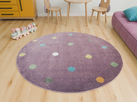 Dywan okrągły kropeczki fiolet 120×120 cm als
