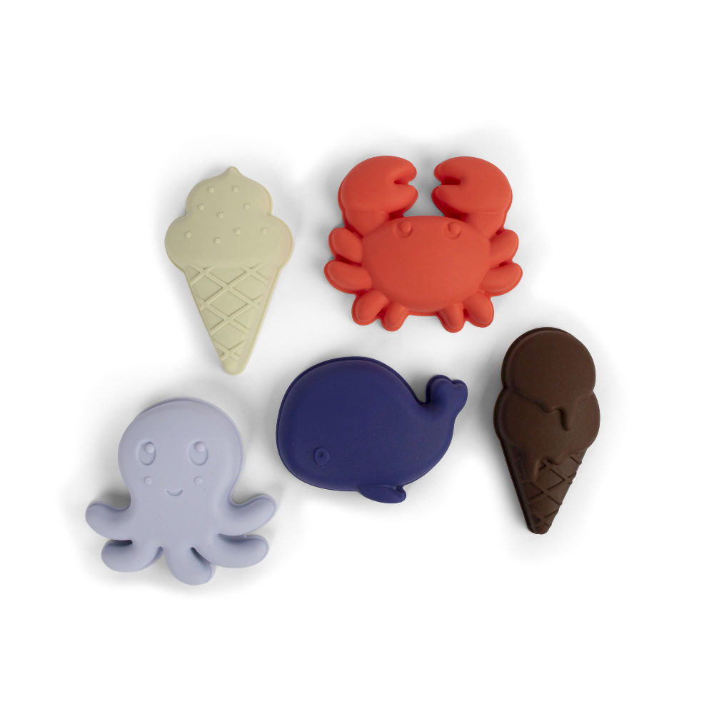 Zestaw foremek do piasku składa się z pięciu uroczych foremek wykonanych z trwałego silikonu. Silikon to bardzo elastyczny materiał, który nie pęka i nie łamie się jak plastik. Z tym zestawem foremek do piasku Twoje dzieci są gotowe na najlepsze plażowe wypieki!