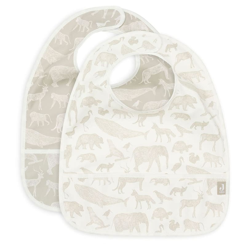 Jollein 2 śliniaki wodoodporne z kieszonką Zwierzęta ANIMALS Olive Green BBTB